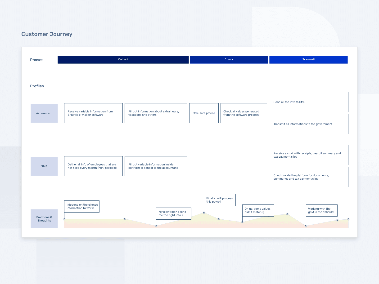 Payroll processes in Brazil are notoriously complex, with layers of compliance, taxation, and operational friction. Conta Azul sought to offer a modern, simplified solution for small businesses, but needed to design an intuitive flow that met both legal requirements and user expectations.